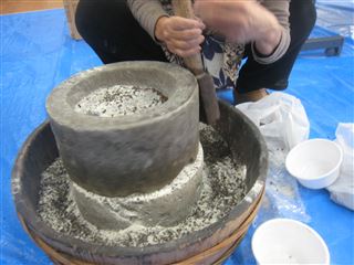 石臼でもソバひきの体験などが行われていた。