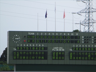 時間があるので、涼しい所で休憩、前の試合天竜高校と富士宮北高校のスコアボードが見える。