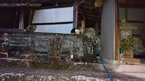 祀ってある食べ物を狙っているのか野良猫が、一匹2匹と集まっていた。