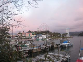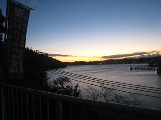 先週「浜名湖半周忘年ラン」で走った舘山寺海水浴場まで行く、夕暮れの湖畔もいいものだ。