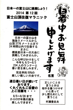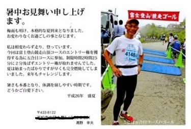 もう一つの「暑中お見舞いは」このマラニックの呼びかけ人である萩田さんからだ。