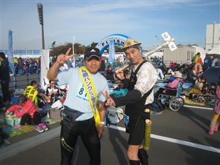 初めてのトライアスロン、彼は袋井から伊良湖の会場まで来てくれた。