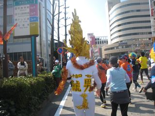 ユックリ走って行くと、前方に鯱男(しゃちほこおとこ)発見。