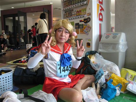化粧をしている男性・・・ラン友 発見!!