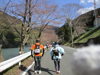 秋葉ダム桜マラソンのコース上の桜(ソメイヨシノ)もまだ二分咲きくらいだ