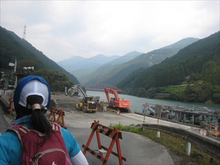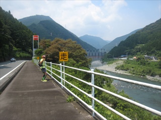 国道を離れ、秋葉ダムの堰堤を渡り、ダムの公園で一休み、ココには自動販売機、冷たい山水も出ている。