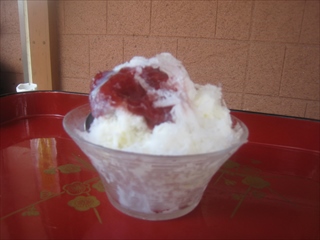 お店の人にすすめられてイチゴジャムのかき氷を食する。。。