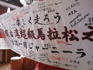 ヒロボーさんは、お手製の横断幕を持って走った。