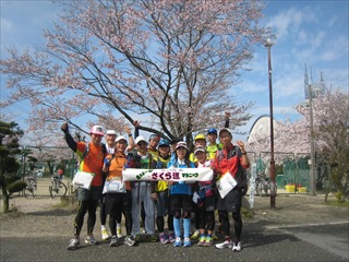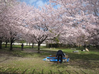 近くの公園でジョグ、お花見の準備のオジサンと話し込む