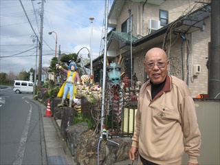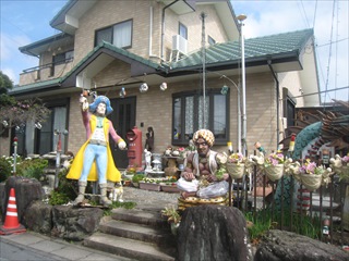 しばらくすると、家の前に不思議なモニュメントを飾ってある家が