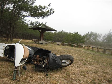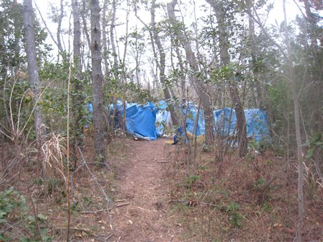 海を見た帰り、松林の中のブルーシートハウスを発見!!