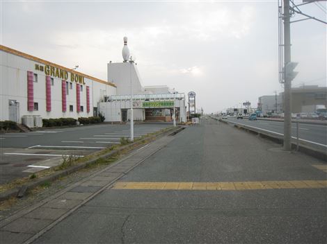 国道一号に出ると、私が生まれて初めてボーリングをしたグランドボールが今もあった。