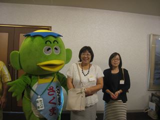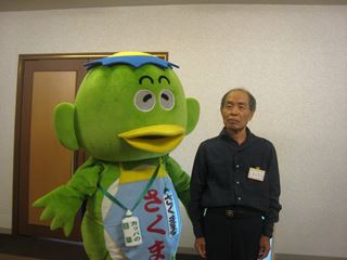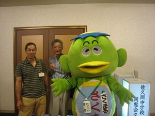 佐久間町の地で中学生時代を育った人たちの同窓会、私は佐久間観光協会のゆるキャラ「さくまるくん」と共に出席した。