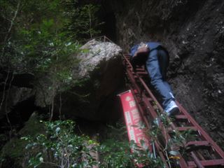 久しぶりに来た乳岩、大きな岩の中の絶壁を登る。