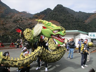 そして、その竜神が佐久間ダム湖畔広場に行き、竜神の舞が始まる。