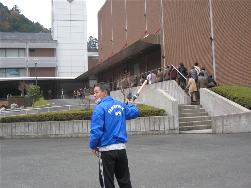 講演が終わり、島田洋七先生が左袖に隠れるのを確認し、急いで駐車場の係りの定位置に行くのであった。。。。