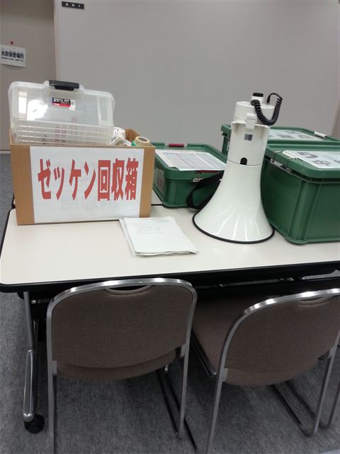 小ホールの中は所狭しと、駅伝用の荷物が並んでいる。