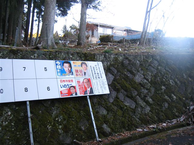 下平山小学校跡(今は下村山農村学校)まで来て、ここで昼食にするつもりだったけど、風が強かったので煎餅だけ口に含み、まだまだ続く下平山の村を上っていく。