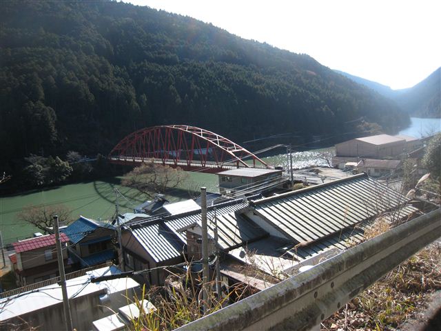 ここからは下り、瀬尻の町まで下っていく、しばらくすると瀬尻の町が見え、赤い瀬尻橋が見えてくる。