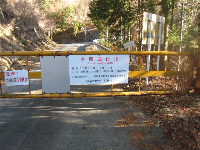 ゲートの脇からスーパー林に侵入、スーパー林道では「天竜・秋葉神社」方面に進む。