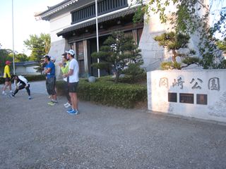 朝5時半から、50名余りのランナーは10人ずつのグループに分かれ5分おきに岡崎公園を本長篠に向けて走り出した。