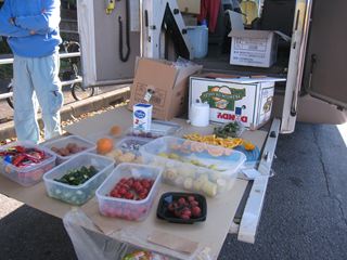 5㎞ごとのエイドには強右衛門倶楽部の用意してくれた食べ物がたくさんだ。