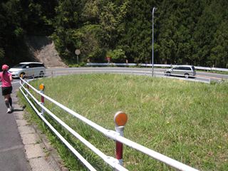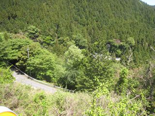 本宮山から新城への下り坂は九十九折の坂道、部屋ピンカーブではオートバイの危ないこと。