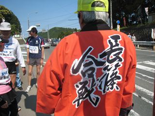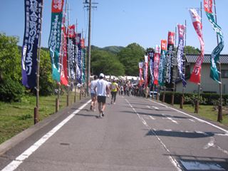 午後2時、ランナーたちは本長篠の長篠合戦のぼりまつり会場に入っていく。