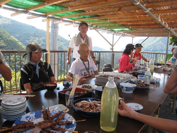 ここでは、おはぎ・焼き鳥・ソバ・そうめん・イカ焼き・栗の渋皮煮・その他沢山の食べ物でおもてなし。