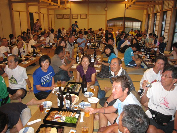 走り終えたら、かぐらの湯に入り一日の疲れを癒し、そして後夜祭、ランナーも地遠山の人たちも一緒にお酒を飲む。