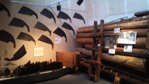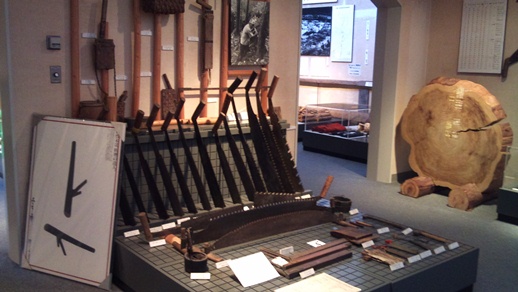 祖父が、やっていたという"こびき"(ノコギリで板を作る職人)が使っていたノコギリ壁いっぱいに飾ってあった。