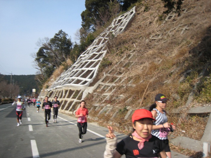 2006年12月11日の「袋井クラウンメロンマラソン」フルマラソン後半、辛くもがいていると、ミニスカートのサンタ仮装のランナーに軽く抜かされた。
