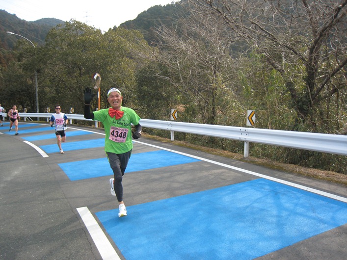ゴール近くでミッキーマウスのミニーちゃんの仮装の人と会い「途中サンタに抜かれた!!」と言ったら「それは私の娘ョ~!」と言っていた。