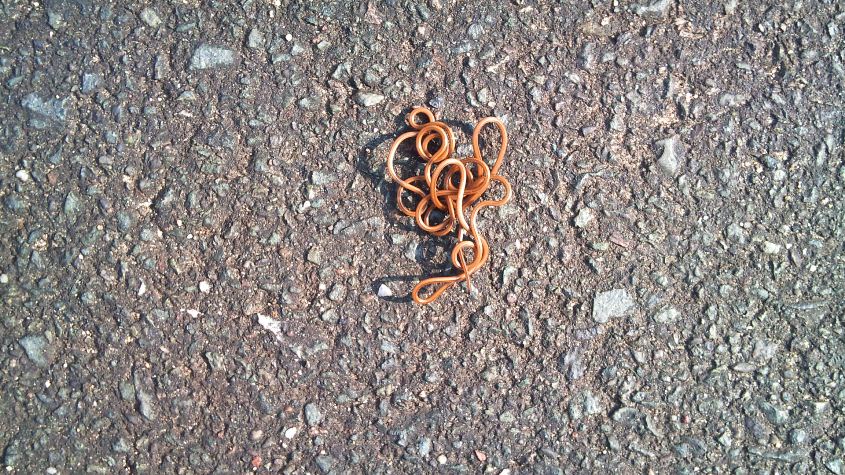 今日、職場でのこと。道路に針金のようなものが落ちていたので、車が踏んでパンクでもしたらよくないと思い拾ったら・・・・なんと、動くではないか。