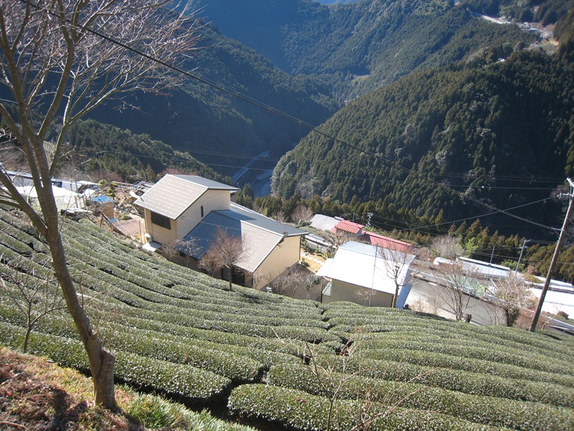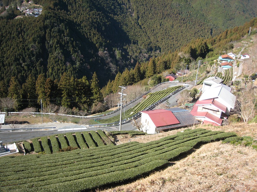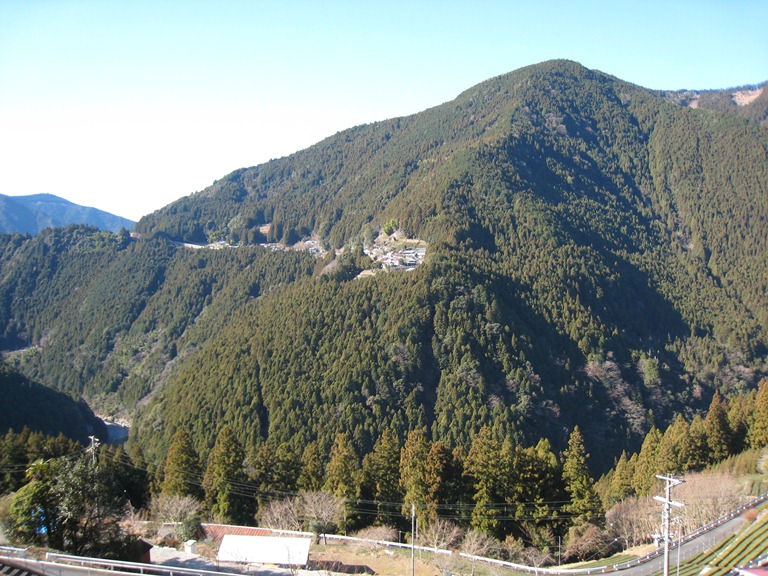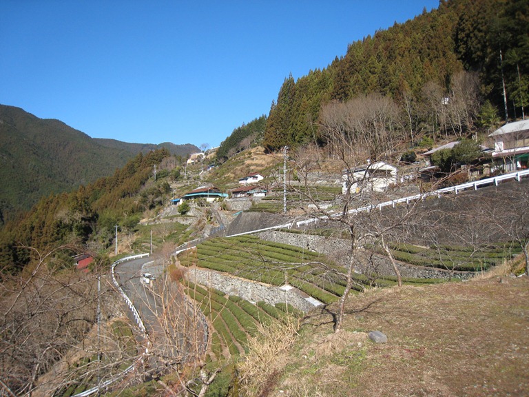 佐久間駅伝3区中継所 付近から和泉(いずみ)の村に上る、ここからは歩き、向かいの瀬戸の村が見える。