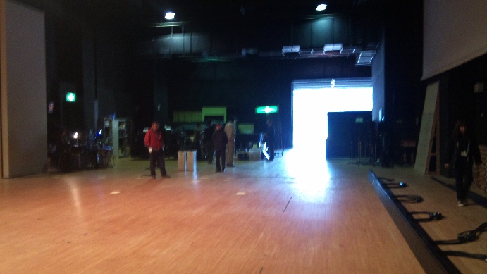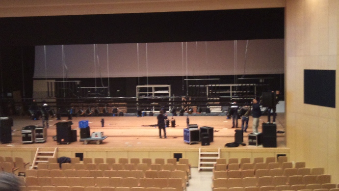 「松居直美&音羽しのぶ歌謡コンサート」が終わり、舞台裏へ音響・舞台装置の撤収。