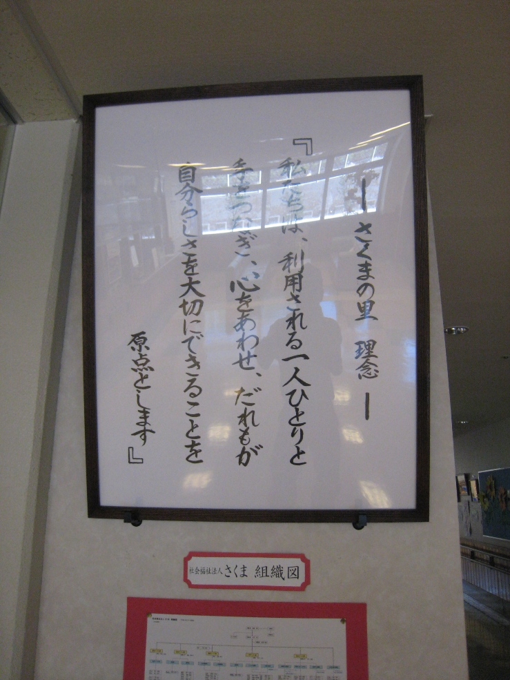 そこの 特別養護老人ホームの中を歩いていたら、ホームの理念が書いてあった。