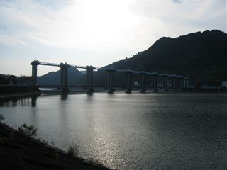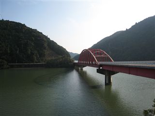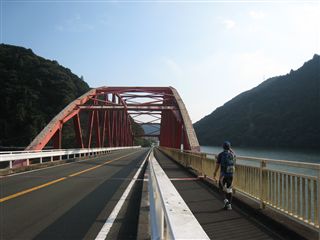 水窪駅から、水窪川の吊り橋を渡り、水窪の町へ。