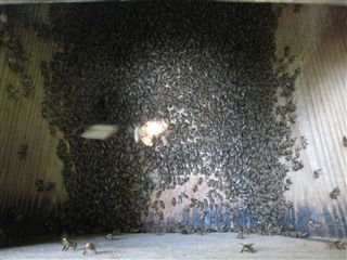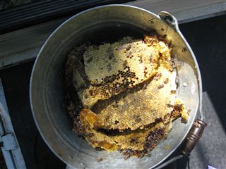 中を明けると、御覧の通り、ミツバチの巣がぎっしりと詰まっている。